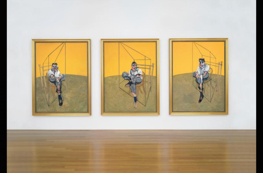Obrazy britského malíře Francise Bacona jsou expresivní, plné hrůzy, násilí a absurdity. V triptychu Tři studie Luciana Freuda, který zhotovil v roce 1969, se jeho styl odráží i ve zdánlivě prostém portrétu sedící postavy. Dílo zachycuje malíře Luciana Freuda (vnuka zakladatele psychoanalýzy Sigmunda Freuda), s nímž se Bacon seznámil na konci druhé světové války. Vydražený triptych se nikdy dříve v aukci nenabízel a očekávalo se, že vynese kolem devadesáti milionů dolarů. Konečná dražební částka, stanovená na aukci v polovině listopadu 2014, však překonala odhad o 52,4 milionu dolarů, a soubor se tak stal nejdražším v aukci .