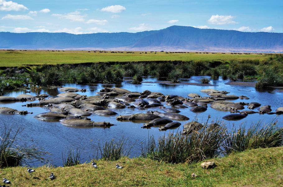 Nejvíc nebezpeční jsou dominantní samci a samice s mláďaty. Jsou známy i případy, kdy hroši poškodili auta turistů, kteří v jejich blízkosti nerespektovali základní pravidla bezpečného chování. (foto: Shutterstock)