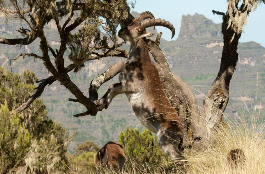 Pozorovat kozorožce walia s dlouhými masivními rohy na skalních ochozech Simienských hor je neuvěřitelný zážitek. Jejich výrazná silueta jaksi patří k rozeklaným a typicky ostře řezaným profilům etiopského horského reliéfu