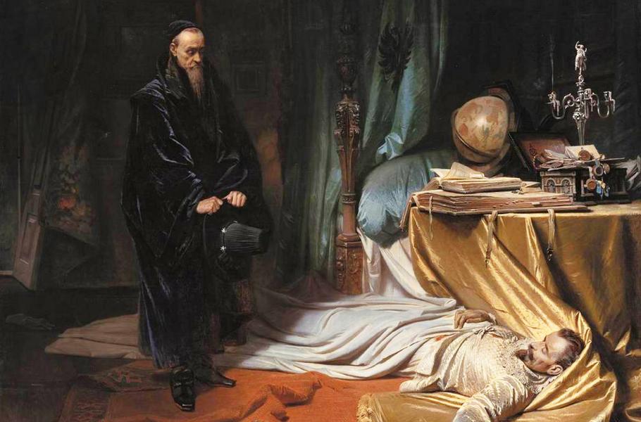 Valdštejnův astrolog Giovanni Battista Seni nad tělem zavražděného vojevůdce. Sám smrti unikl jen náhodou.