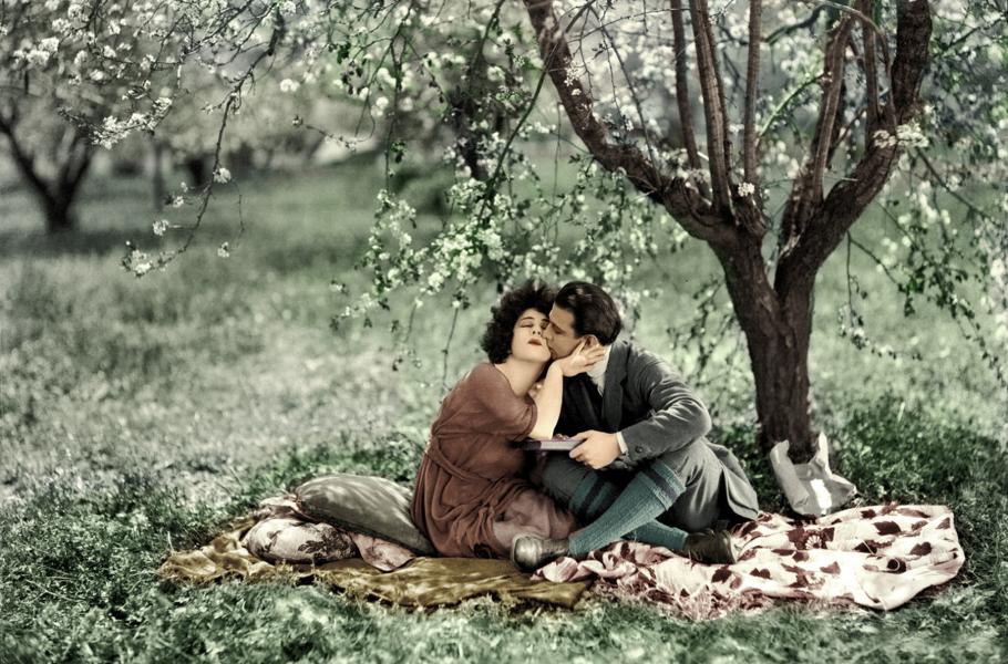 Alla Nazimovová v němém snímku Camille s Rodolfem Valentinem – šlo o filmový přepis Dumasovy Dámy s kaméliemi.