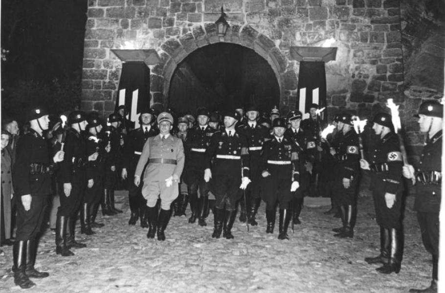 Říšský vůdce SS Heinrich Himmler během návštěvy Quedlinburgu při příležitosti výročí smrti významného středověkého panovníka Jindřicha I. Ptáčníka, rok 1938