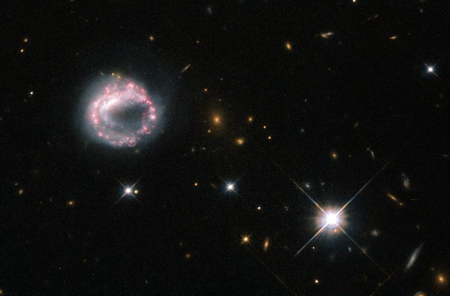 Prstencová galaxie Zw II 28 pohledem Hubbleova vesmírného dalekohledu. (foto: ESA, Hubble, NASA, CC BY-SA 4.0)