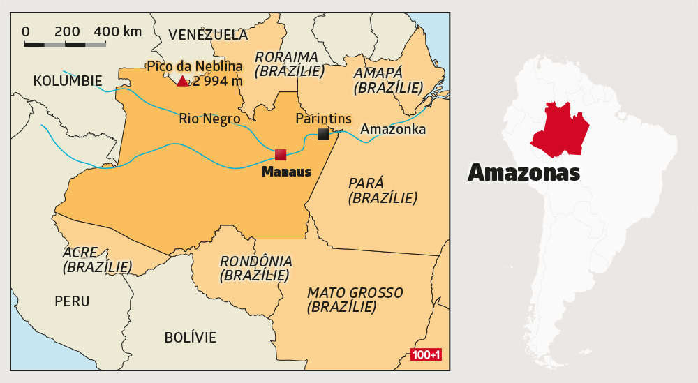 Největší ze sedmadvaceti brazilských států rozlohou dvacetkrát překonává Česko, ale víc než tři čtvrtiny jeho území pokrývá neprostupný deštný prales. Proto patří Amazonas, navzdory svému ekonomickému významu, zároveň k nejřidčeji osídleným oblastem planety