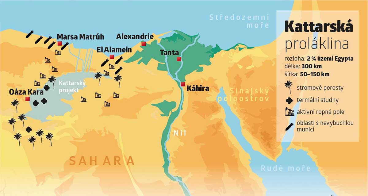 Stačilo by pár kanálů, a část egyptské pouště by se proměnila v oázu života. Jak je však vyhloubit? Století přetrvávající otázka našla „řešení“ třeba i v návrhu na jaderné exploze, k nimž naštěstí nikdy nedošlo. Projekt Kattara se tak na stoly inženýrů neustále vrací…