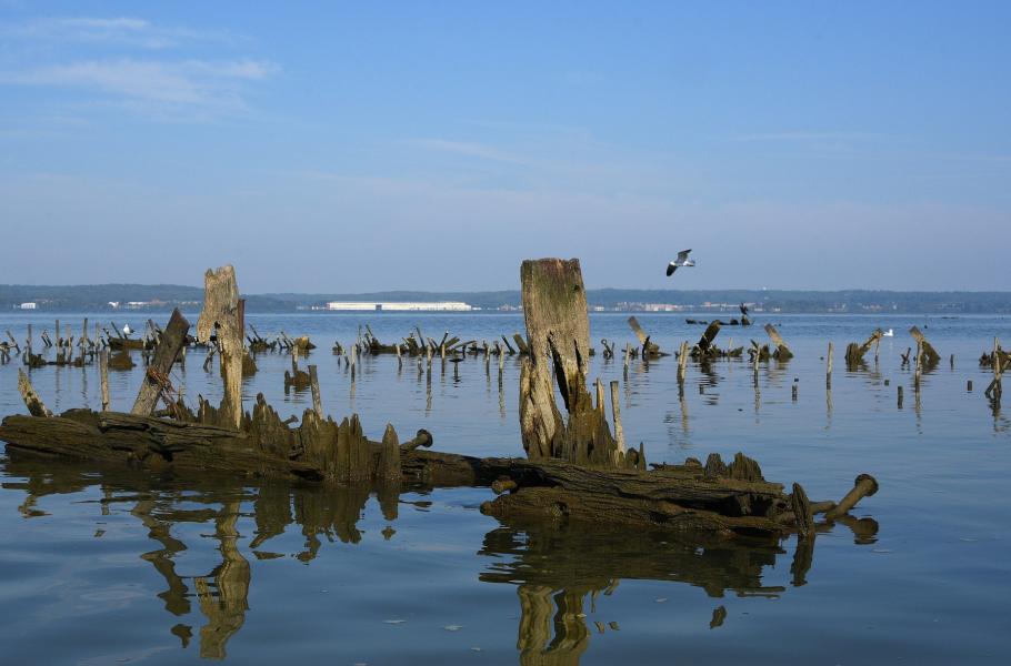 Pozůstatky lodí v zátoce Mallows, kde odpočívají desítky lodí. (foto: Wikimedia Commons, Amaury Laporte, CC BY 2.0)