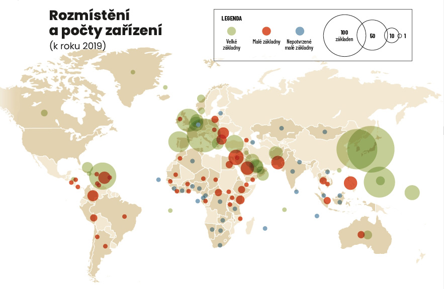 - 750 základen v nejméně 80 zemích
