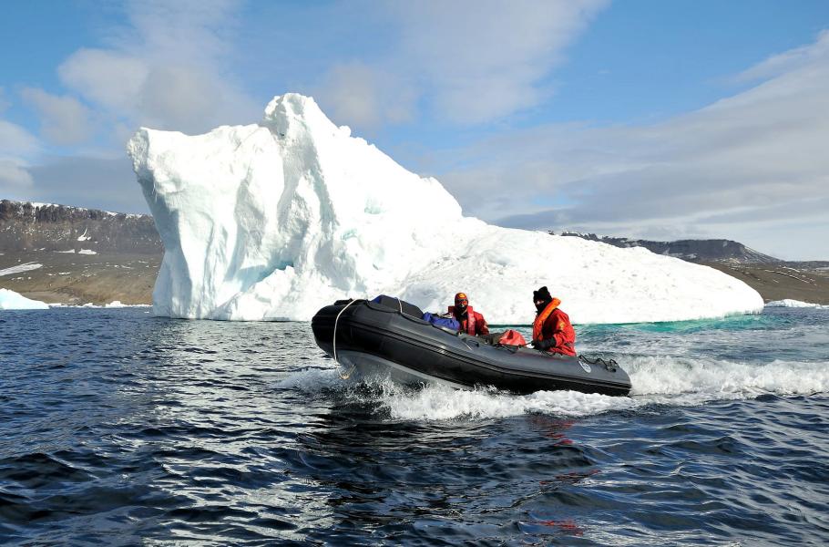Chodit po kamenitých antarktických pláních pěšky je náročné. Cestu k odlehlým měřicím stanovištím značně ulehčují motorové čluny. (foto: Český antarktický výzkumný program - se souhlasem k publikování)