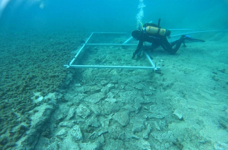 Výzkum nově objevené pradávné cesty na mořském dně. (foto: University of Zadar, CC BY-SA 4.0)