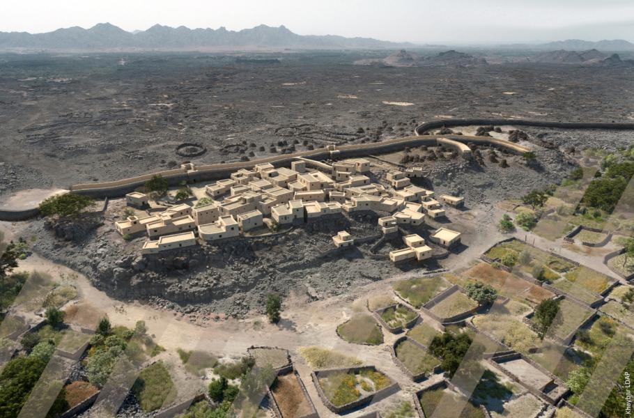 Virtuální rekonstrukce osídlení na lokalitě al-Natah v oáze Chajbar. (zdroj: PLOS One, AFALULA-RCU-CNRS, CC BY-SA 4.0)