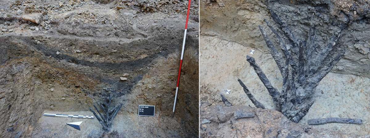 Na snímcích, které Auth zveřejnil, jsou patrné dřevěné hroty, které se zachovaly šťastnou náhodou, díky příhodným vlastnostem zeminy. Ukázalo se, že jde o první hmatatelný důkaz obranné technologie, kterou popsal Caesar. Badatelé rovněž objevili římskou minci raženou v roce 43 našeho letopočtu, což jim umožnilo přesněji určit stáří objeveného opevnění.