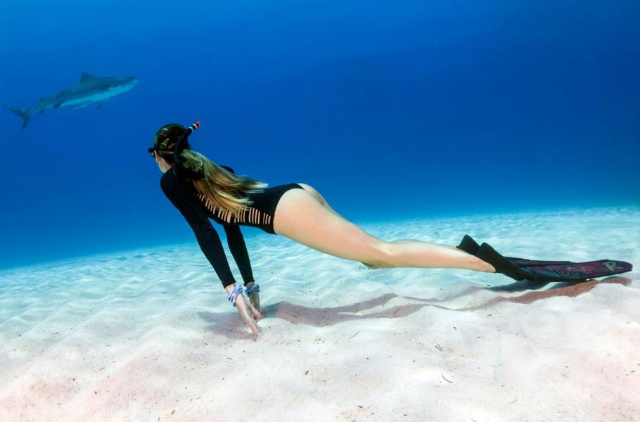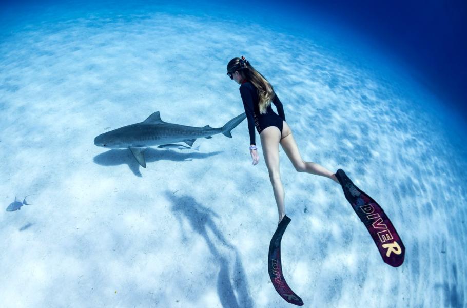 Tato úspěšná americká freediverka, spolu s fotografem Alanem Eganem, nafotila nedaleko floridského pobřeží sérii úchvatných snímků z potápění mezi žraloky Perezovými, žraloky citronovými a ve vztahu k člověku i s patrně nejagresivnějším druhem žraloků – žraloky tygřími.