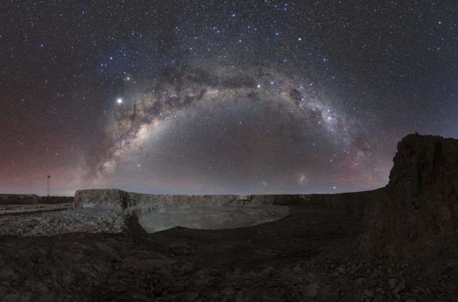 Podle pozorování a výpočtů astronomů je Mléčná dráha stará asi 13,6 miliardy let. Tvoří ji přibližně 100–400 miliard hvězd i rozsáhlá molekulární oblaka a oblasti vyplněné plynem a prachem. (foto: ESO, Per Horálek, CC BY-SA 4.0)