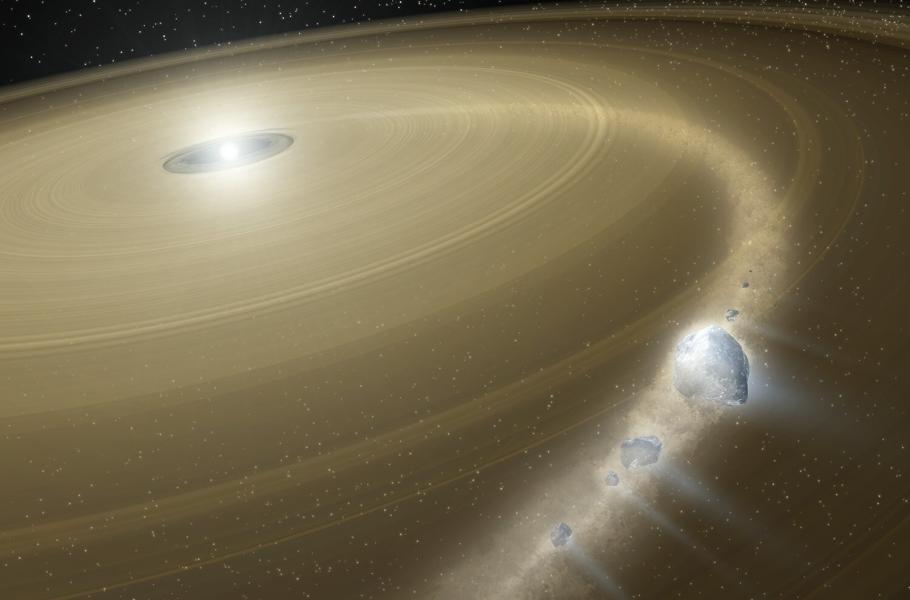 Snehalata Sahuová z britské Univerzity ve Warwicku a její kolegové zjistili, že přitažlivost bílého trpaslíka s velkou pravděpodobností trhá na kusy ledový objekt podobný Plutu, který se pohyboval v obdobě Kuiperova pásu Sluneční soustavy. Tým Sahuové z dat Hubbleova dalekohledu také vyčetl chemické složení objektu, jehož kusy padají na bílého trpaslíka. Ukázalo se, že zahrnuje řadu látek s nízkým bodem tání, včetně uhlíku, síry, dusíku, a také vysokého obsahu kyslíku, který ukazuje na přítomnost velkého množství vody. Jde o překvapivé zjištění, neboť podle teoretických modelů ledová tělesa během proměny hvězdy v bílého trpaslíka zničený planetární systém opouštějí.
