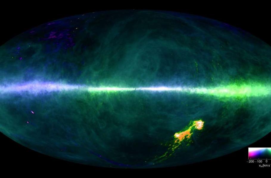 Mapa vodíku v naší Galaxii vznikla díky tisícům hodin pozorování a také tisícům hodin počítačového času. Mapa ukazuje rozložení vodíku a jeho pohyb vůči nám.