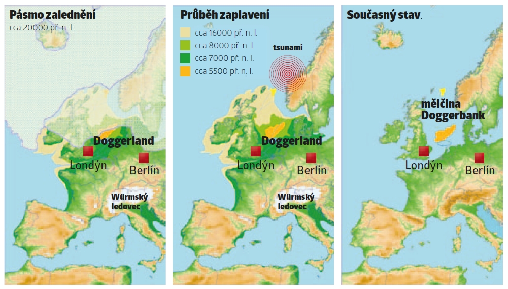 V uvedené době se fyzická mapa Evropy značně lišila od té současné: Hladina moře na severu světadílu ležela asi o 60 metrů níž než dnes a řeky jako Labe či Rýn tekly jinými koryty. Zmíněný pevninský most, pro nějž se vžil název Doggerland, se zřejmě táhl až k hranicím dnešního Dánska. O existenci zmizelé pevniny se moderní věda dozvěděla teprve před sto lety, a to díky rybářům, v jejichž sítích čas od času uvízly kosti či zuby vyhynulých mamutů nebo praturů. Nechyběly však ani důkazy o přítomnosti lidského osídlení: Například v roce 1931 moře náhodně vyplavilo asi 20 cm dlouhou harpunu, datovanou později do roku 11 740 př. n. l.