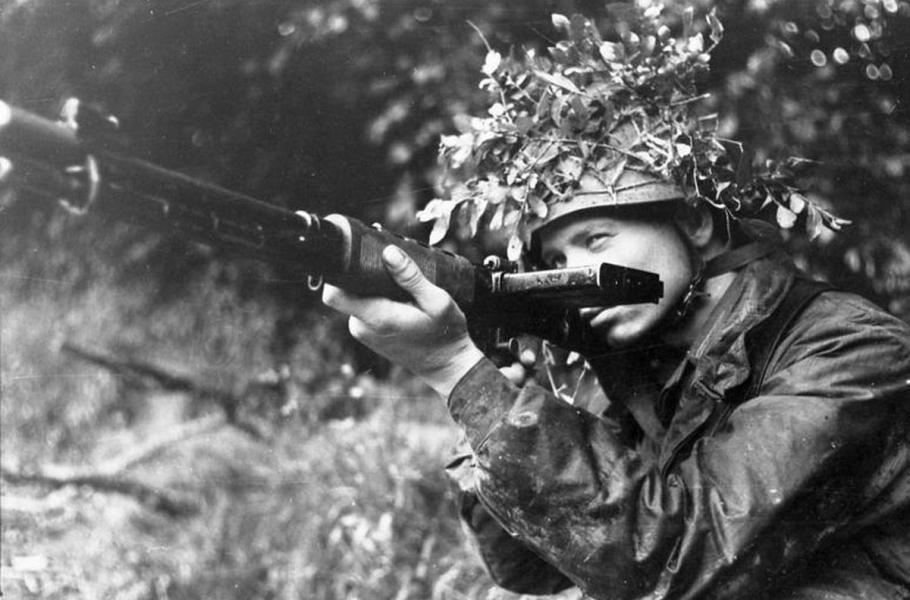 Výsadkář střílí z FG 42. Francie, podzim 1944. (foto: Bundesarchiv, Wolfgang Vennemann, CC-BY-SA 3.0)