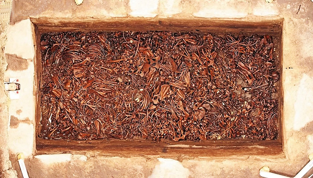 Jednalo se například o kosti orlů skalních, křepelek, vlků a jaguárů vykazujích známky léčených zranění, problémů s klouby a infekčních nemocí. Vzhledem k závažnosti řady z nich je podle Mendeze nepravděpodobné, že by takové zvíře přežilo v divočině. Z toho usuzuje, že před obětování byla tato zvířata chována v zajetí, možná dlouhou dobu a lidé se o ně dle svých možností starali.