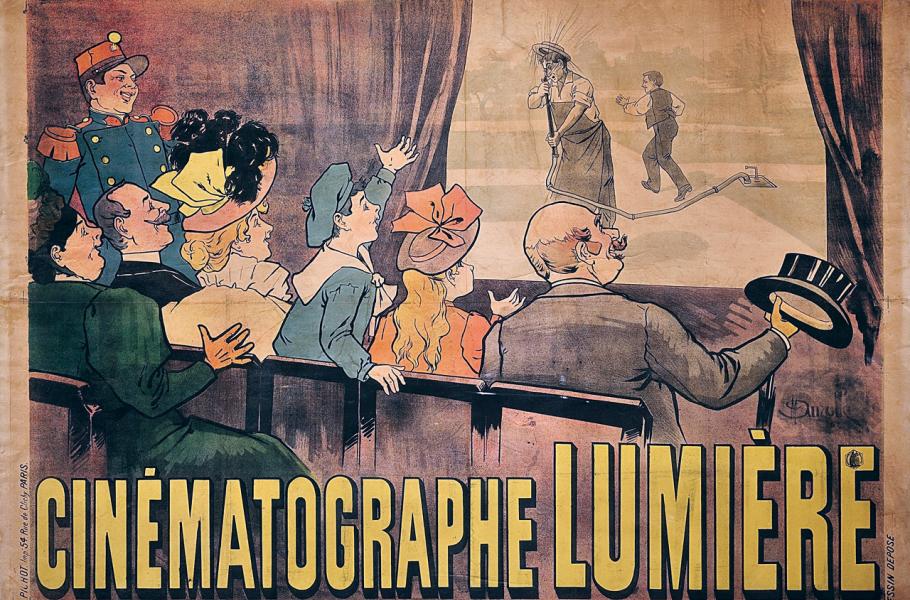 Kolébkou kinematografie se stala Paříž, kde 28. prosince 1895 bratři Auguste a Louis Lumièrové úspěšně promítali sotva minutové snímky jako například Dělníci odcházejí z Lumièrovy továrny, Příjezd vlaku anebo hraný kousek Pokropený kropič, který ukazuje chlapce, jak přišlápl zahradníkovi hadici na zalévání, čímž ho pokropil. Velký sukces pařížských zhruba půlhodinových představení vyslal film do světa, přičemž o sedm měsíců později, přesněji 15. července 1896, se uskutečnila první filmová projekce francouzských snímků v Karlových Varech. Po nich hned následovala představení v Mariánských Lázních, Brně, Ústí nad Labem nebo v Moravské Ostravě.