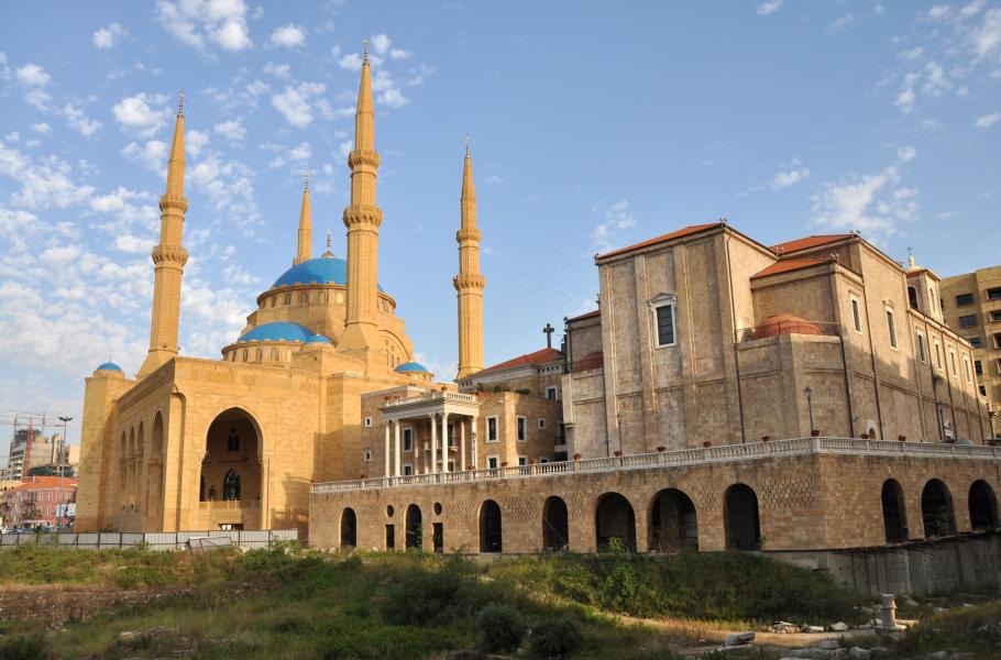 Mešita Al-Amin se v roce 2005 stala dominantou městského centra, ovšem zástupci křesťanské sekty maronitů působící v sousedním kostele se rozhodli, že nezůstanou pozadu, a nechali vybudovat vysokou zvonici, která konkuruje okolním minaretům. Hned vedle pak najdete vstup na nádvoří mešit. Kříž a půlměsíc zde tak existují bok po boku.