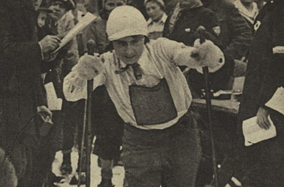 Lyžařský šampionát republiky v Jilemnici roku 1931 – Běla startuje v závodu žen na 8 km, který nakonec vyhrála. (foto: Wikimedia Commons, PDM 1.0)