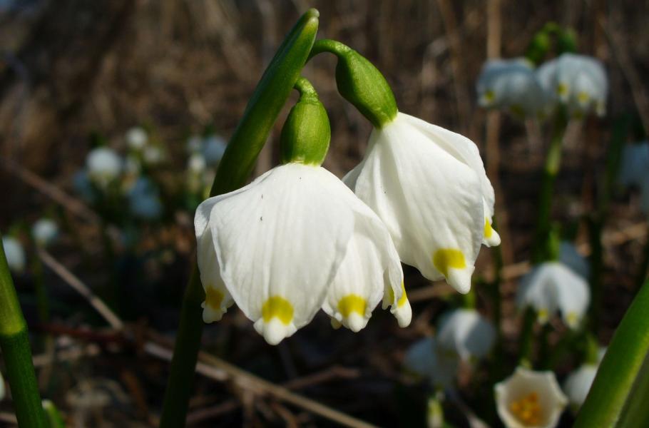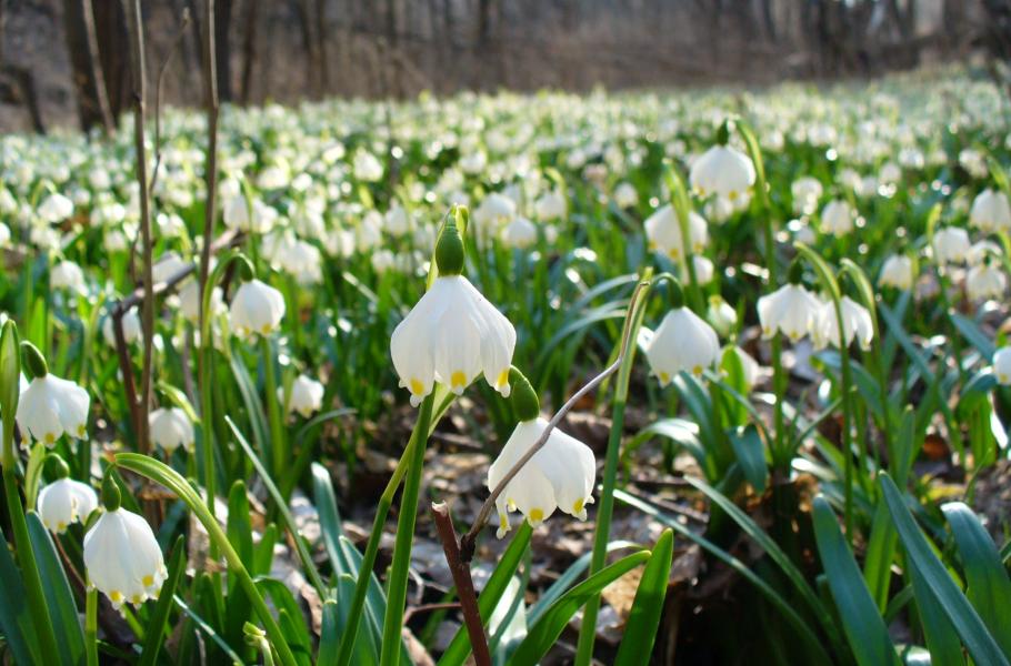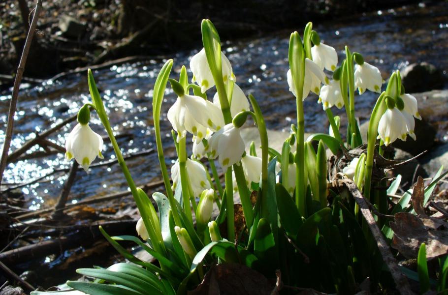 Jméno bledule by slušelo i křehké lesní víle. Nespočetné bělostné davy takových lesních žínek tančí v jarním vánku za neustávající hudby průzračných vod Chlébského potoka