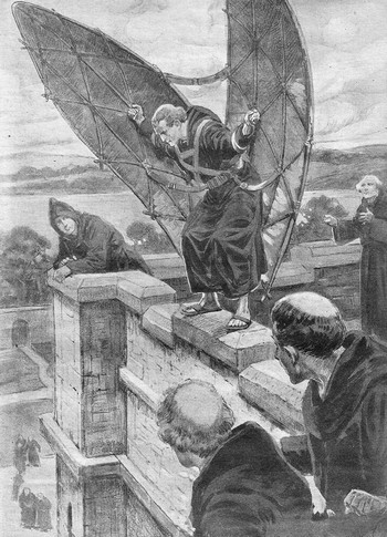 Pod vlivem mýtu o Ikarovi se jistý benediktinský mnich v 11. století pokusil vzlétnout. Vlastnoručně vyrobená křídla však příliš nefungovala a jeho skok z věže skončil vážným zraněním