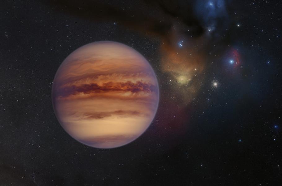 Jen v roce 2021 se podařilo pomocí dalekohledů ESO odhalit 70 toulavých planet. Zmíněné objekty o hmotnosti srovnatelné s oběžnicemi Sluneční soustavy nekrouží kolem žádné stálice, ale osamoceně putují mezihvězdným prostorem. Tito záhadní nomádi se vesmírem pohybují daleko od hvězd, jež by je mohly osvětlovat. I miliony let od svého zrodu si však udržují dostatečnou teplotu, aby sami vyzařovali infračervené světlo. Jejich počet v naší Galaxii se odhaduje na několik miliard až bilionů. (ilustrace: ESO, CC BY 4.0)