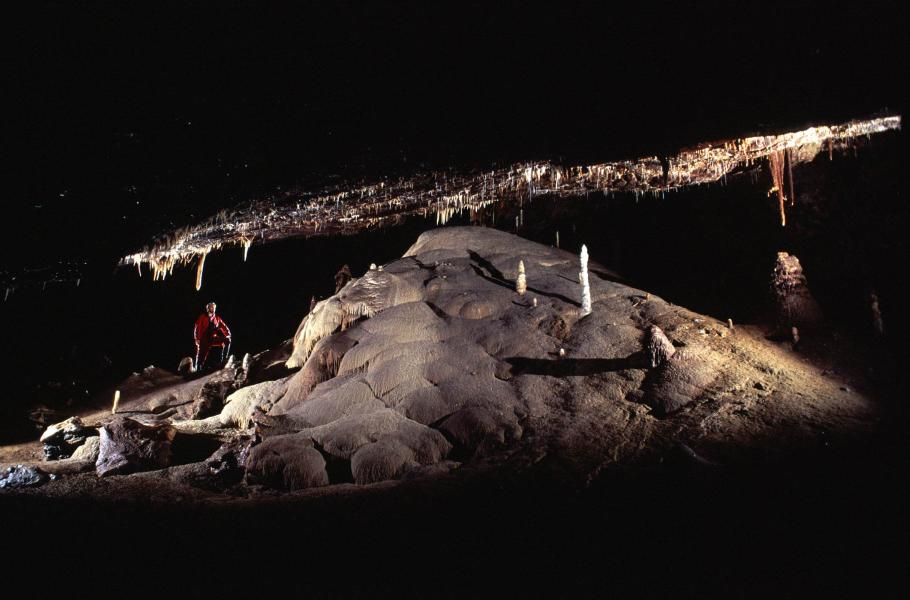 Obrovský sintrový útvar v Amatérské jeskyni, která je dnes symbolem amatérské speleologie u nás