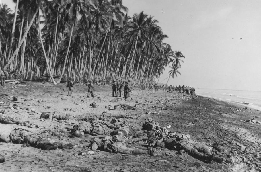 Těla vojáků, kteří padli 21. srpna v boji u ústí řeky Tenaru. S nimi zahynul i jejich velitel plukovník Kijonao Ičiki. (foto: Wikimedia Commons, United States Marine, PDM 1.0)