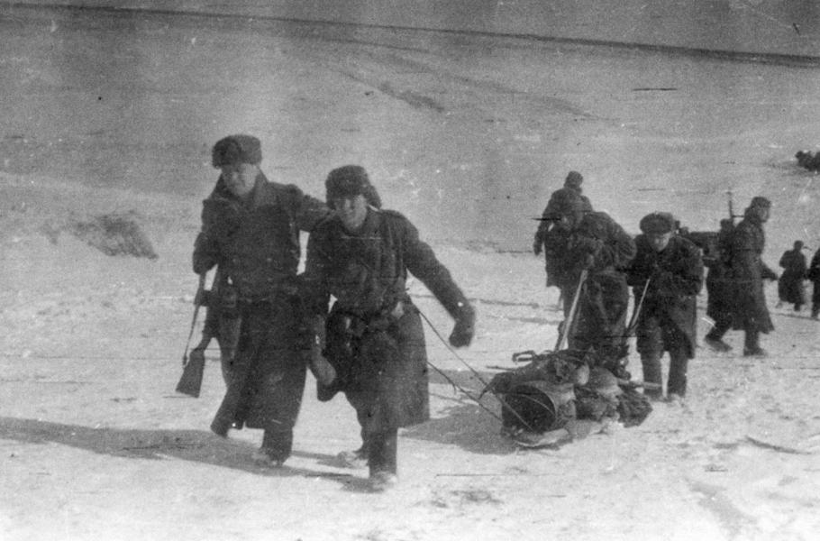 Část cesty na frontu museli čs. vojáci absolvovat pěšky, protože železniční trať byla od Valujek dále rozbita.