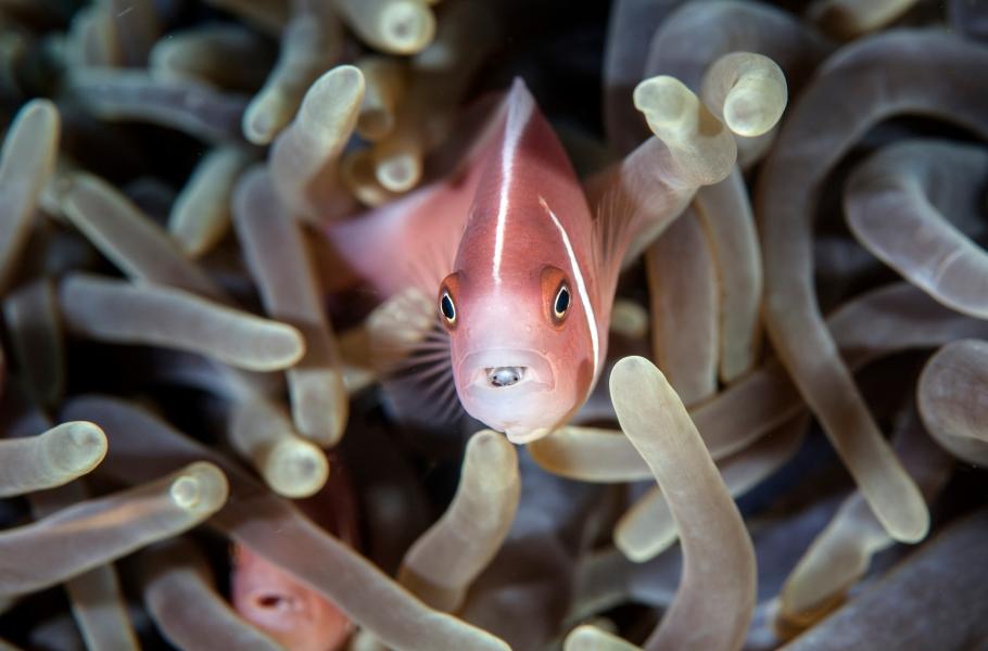 Nenechte se zmást fotografií klauna očkatého a podívejte se pozorněji do jeho otevřených úst: Objevíte v nich nezvaného hosta druhu Cymothoa exigua. Na první pohled sice vypadá nenápadně, jedná se však o velmi nepříjemného mořského parazita. Drobný korýš dorůstající velikosti 8–26 mm pronikne do těla ryby žábrami a usadí se jí v ústech. Tam se zakousne do jazyka přímo u kořene a saje z něj krev tak dlouho, dokud sval neodumře a neupadne. Cymothoa se pak přichytí na jeho místě a ztrátu „nahradí“ – v dutině zůstává a živí se buď krví, nebo rybím slizem.