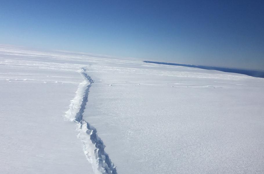 Nyní se zdá, že se nezadržitelně blíží doba, kdy se část této obří ledové masy rozpadne. Vědci v Antarktickém ledovém příkrovu objevili přes 30 kilometrů dlouhou prasklinu. Situace je o to horší, že prasklina se neobjevila v okrajových částech, nýbrž hluboko ve vnitrozemí – v oblasti mateřského ledovce Pine Island Glacier. Podle vědců může jít o začátek kolapsu západního Antarktického ledového příkrovu. K destabilizaci ledovce dochází vlivem stoupající teploty vody.