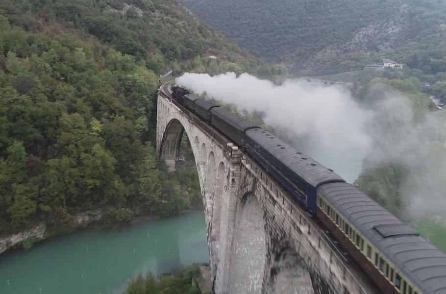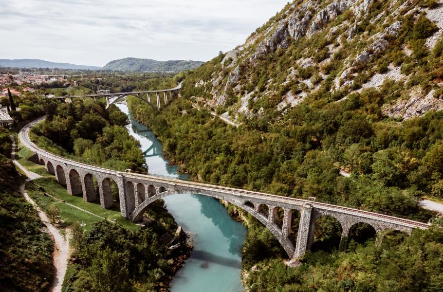 Na nostalgické jízdě po proslulé bohinjské železnici najdete 28 tunelů a přes 65 mostů. Mezi nimi je i překrásný obloukový most Solkan, který byl zprovozněný už v roce 1906. Tvoří ho více než čtyři a půl tisíce vápencových bloků. Během první světové války byl most zničen rakousko-uherskými vojáky, kteří nechtěli, aby padl do rukou nepřátelům. Obnovy se dočkal v roce 1927.