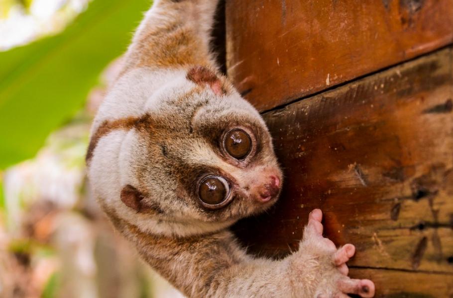 Základem obrany poloopic outloňů je pomalost: Mezi větvemi stromů se pohybují velmi tiše, a pokud je nepřítel odhalí, ztuhnou, aby vypadali co nejméně nápadně. Jestliže se však had či orangutan přece jen nenechá odradit a zaútočí, čeká ho jedovaté překvapení. Ze žláz v okolí podpaží si totiž outloň nanáší do tlamy tekutinu, která se v kombinaci se slinami mění v jed. Poloopice pak může své protivníky velice nepříjemně pokousat. Z jedu si outloni vytvářejí také pasivní obranu – toxické sliny si natírají na srst.