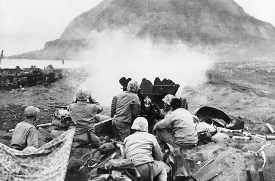 I když Američané disponovali desítkami válečných lodí s nejtěžšími děly a stovkami letounů, k obsazení ostrova musela nastoupit pěchota, která za cenu těžkých ztrát pomocí plamenometů a náloží ničila zjištěné bunkry a střelecká postavení. Útočníci věděli, že palba naslepo je neúčiná, a proto byli na válečné lodě přiděleni zkušení důstojníci námořní pěchoty pro koordinaci palby.
