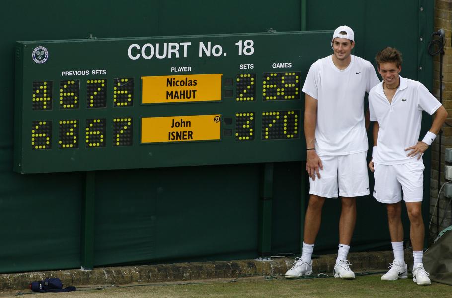 Rekordně dlouhé tenisové utkání pro změnu sehráli Američan John Isner a Francouz Nicolas Mahut. Narazili na sebe v roce 2010 v prvním kole Wimbledonu a jejich zápas začal krátce po šesté hodině večerní. Pár minut po deváté se však musel přerušit pro nedostatek světla, za skóre 2:2 na sety. Druhý den se pokračovalo již brzy odpoledne, ale i tentokrát souboj za stavu 59:59 ukončila tma. Teprve třetí den se Isnerovi podařilo proměnit mečbol. Pátý set tak nakonec trval 8 hodin a 11 minut. (foto: Profimedia)