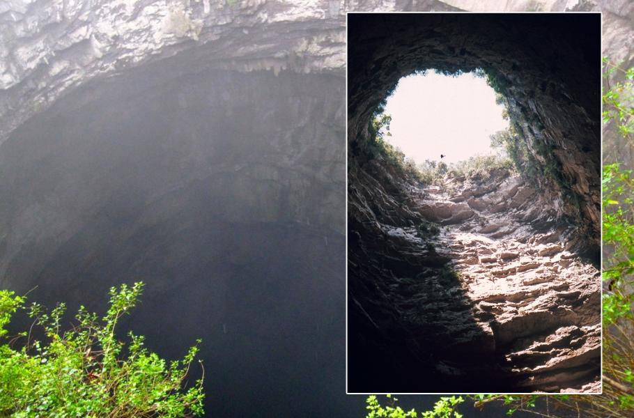 Vlaštovčí jeskyně (španělsky Sótano de las Golondrinas) je otevřená jeskynní propast u městečka Aquismón v mexickém státě San Luis Potosí. V nejhlubším místě měří až 370 metrů. (foto: Flickr, KLRADV, CC BY-NC 2.0 + Wikimedia Commons, Free Art License 1.3)