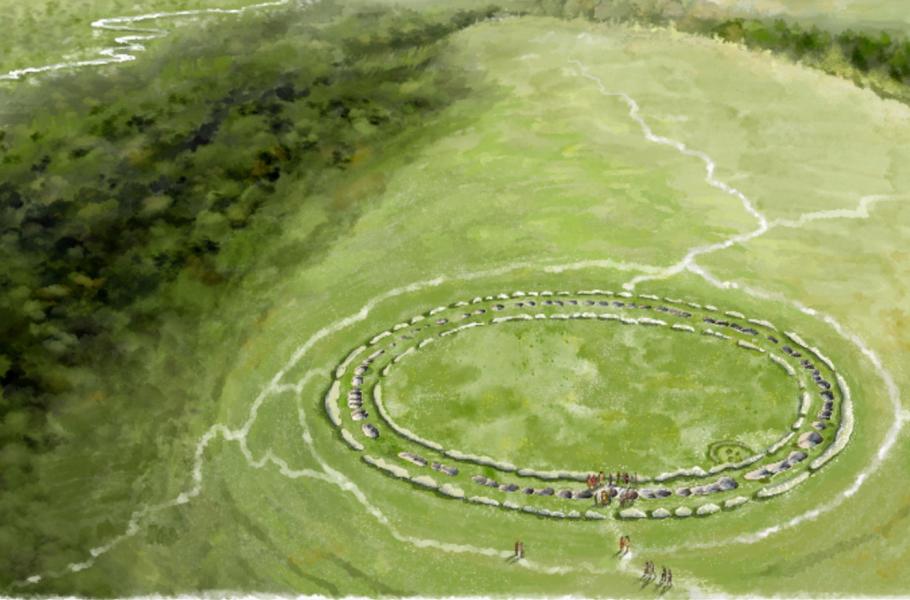 Radiokarbonové datování prozradilo, že neolitické ohrazení Flagstones je asi o 200 let starší než slavné Stonehenge. (ilustrace: University of Exeter, Jennie Anderson, CC BY-SA 4.0)