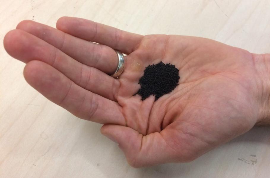 Je to vlastně obyčejný písek, který je potažený oxidem manganičitým. Funguje jako reaktivní látka, která je ale zároveň neškodná pro lidi i životní prostředí. Pokud skrz takový písek protéká znečištěná voda s herbicidy, pesticidy nebo třeba bisfenolem A (BPA), reagují tyto látky s oxidem manganičitým, čímž dojde k jejich odstranění. Dešťová voda je pak docela slušně pitná.