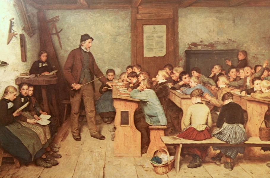 Venkovská škola kolem roku 1848 na obraze Alberta Ankera. (ilustrace: Wikimedia Commons, Albert Anker, CC0)