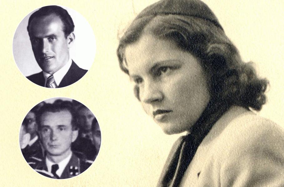 Hana Krupková - žena, která použila své půvaby k přežití a její osudoví muži - manžel Václav Kupka a Kriminální rada pražského gestapa Wilhelm Schulze (spodní výřez).