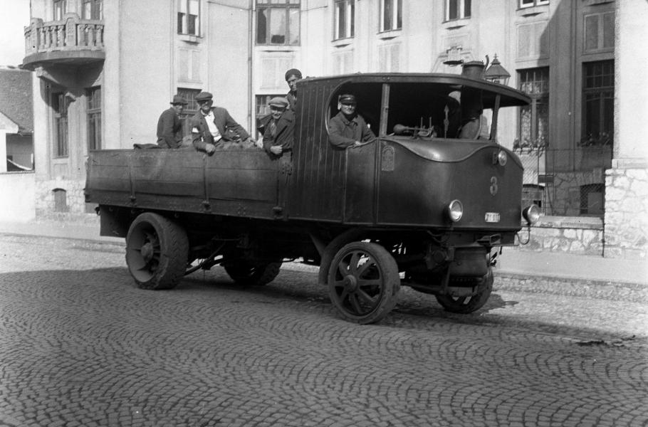 Škoda Sentinel v Košicích v roce 1939. Vůz byl vybaven stojatým parním kotlem a dvouválcovým parním strojem o výkonu 52 kW (70 HP), uloženým před zadní nápravou.