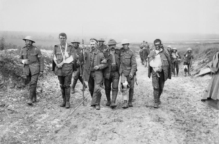Tento snímek pořídil 19. července 1916 oficiální fotograf britské armády Ernest Brooks, který působil v létě 1916 jako oficiální fotograf britské armády na západní frontě. Zachytil na něm skupinu raněných královských vojáků doprovázenou německým zajatcem. V pozadí je pak k vidění také jízdní hlídka jedoucí pravděpodobně na frontu pro nešťastníky, kteří se nedokážou dostat do bezpečí sami.