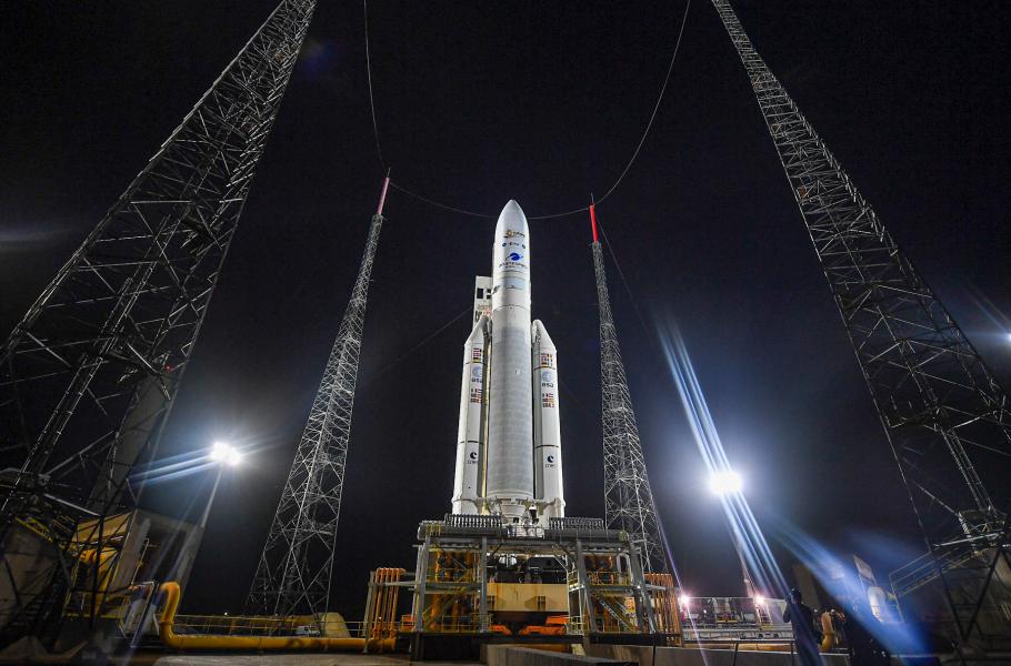 Ariane 5 vynášející Vesmírný teleskop Jamese Webba, prosinec 2021. (foto: ESA/CNES/Arianespace, CC BY 4.0)