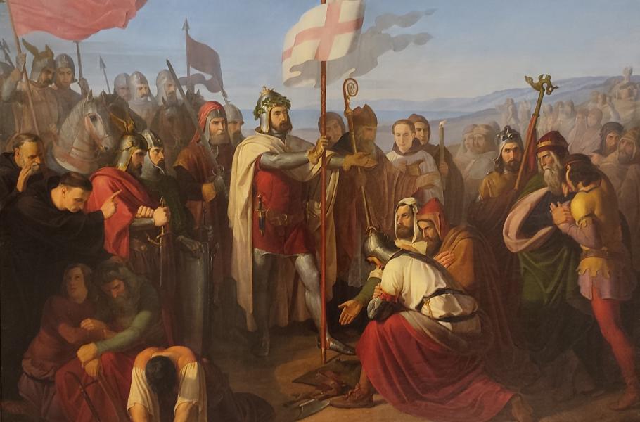 Přemysl Otakar II. nechává křtít pohanské Prusy, obraz Antonína Lhoty. (foto: Wikimedia Commons, Dobroš, CC BY-SA 4.0)