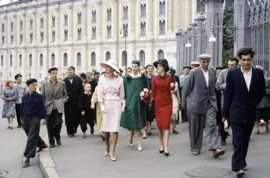 V roce 1959 způsobily v Moskvě menší pozdvižení modelky, prezentující módu značky Christian Dior. Místní média návštěvu okomentovala: „Buržoazní módní návrháři přicházejí se stylem, v němž má žena potíže s chůzí a je nucena držet se svého muže…“