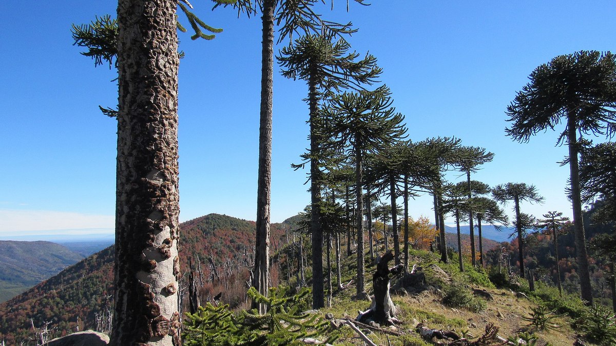 „Sem, pod kopec Cerro Pinchao, chodím vždy, když nemám práci v restauraci a chci si odpočinout,“ říká Stefan, jeden z domácích, a ukazuje mi zdejší dřeviny. Nejzajímavější z nich je zřejmě blahočet chilský (Araucaria araucana) – strom, který domácí nazývají pehuén a pro domorodce z kmene Cunco, patřících k jižní skupině místních Mapučů, je posvátný. Stálezelený strom se zajímavě tvarovanými jehličkami lze považovat za žijící fosílii a vidět jej můžete jen tady na jihu Ameriky. V Evropě je jeho pěstování i jakékoliv obchodování s ním zakázáno na základě konvence CITES a v zemích unie trestáno podle zákona.