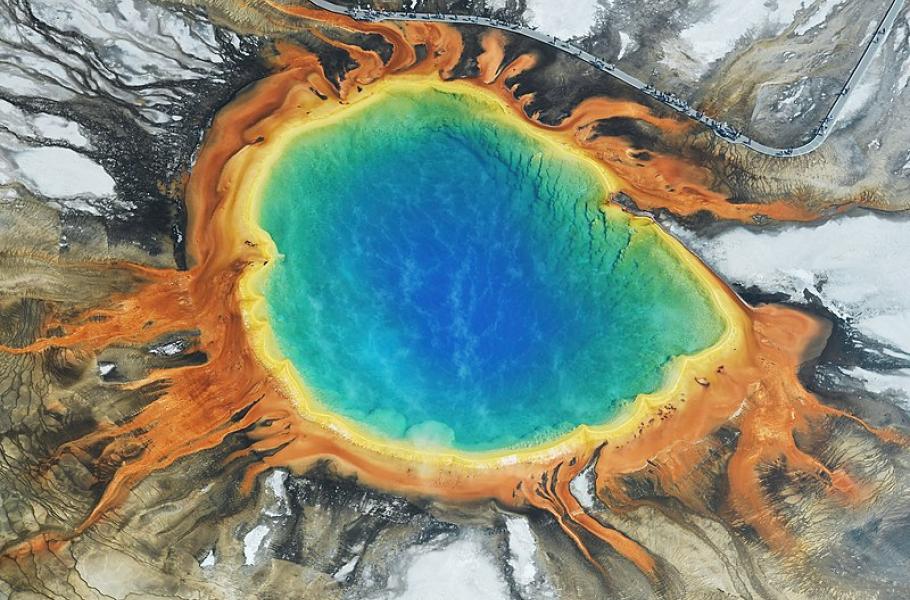 Horké jezero Grand Prismatic Spring v Yellowstonském národním parku. (foto: Wikimedia Commons, Carsten Steger, CC BY-SA 4.0)