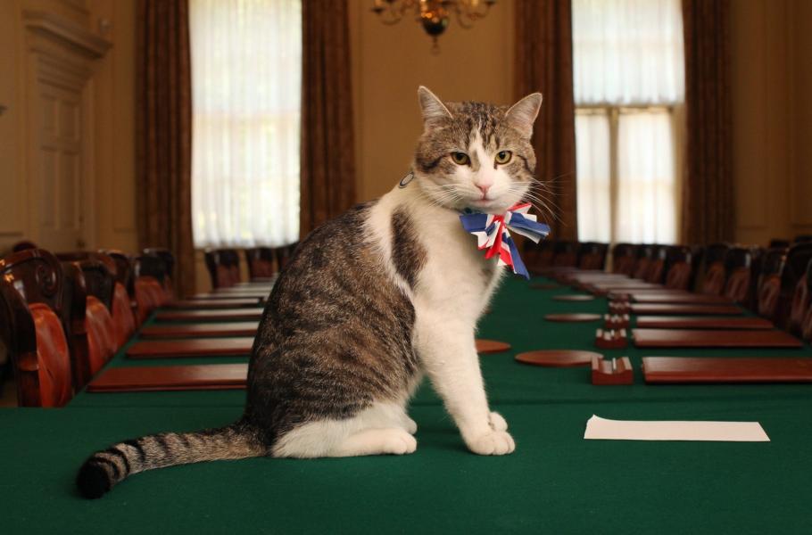 Politické dění ve Velké Británii je poslední roky značně turbulentní, což se odráží na rychlém střídání ministerských předsedů. Zatímco premiéři ze sídla na Downing Street 10 odcházejí a přicházejí, kocour Larry zde v úřadu vrchního myšilova poctivě pracuje od roku 2011.